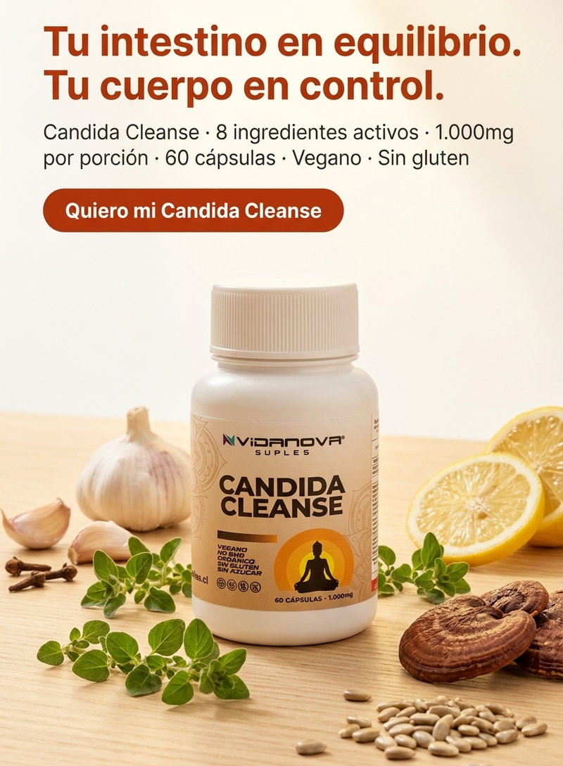 La Cándida es un hongo que vive en tu intestino y cuando se multiplica en exceso genera hinchazón, fatiga, picazón, cambios de humor y mala absorción de nutrientes. Candida Cleanse combina 7 ingredientes herbáceos y funcionales que trabajan en sinergia para eliminar el sobrecrecimiento, restaurar tu flora y fortalecer tu sistema inmune — de forma natural y profunda.