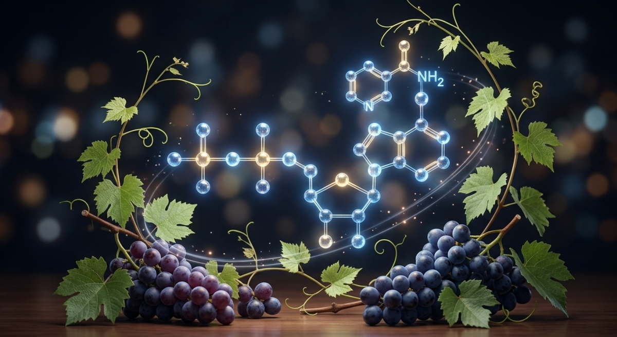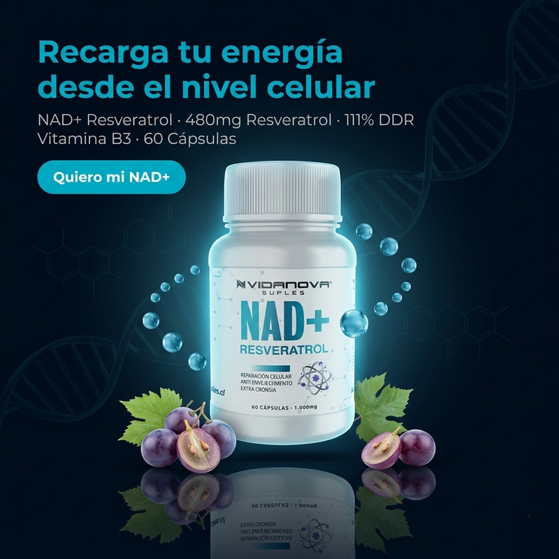 El NAD+ y el Resveratrol son dos de los compuestos más estudiados en la ciencia del envejecimiento saludable. El NAD+ es una coenzima esencial presente en cada célula del cuerpo, mientras que el Resveratrol es un polifenol natural extraído de la uva y frutos silvestres. Juntos, activan las "proteínas de la longevidad" conocidas como sirtuinas, ayudando al cuerpo a mantener su energía, reparar el ADN y combatir el envejecimiento celular desde adentro.