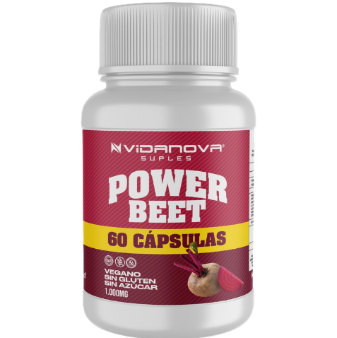 PowerBeet es la fuente más concentrada y pura de Nitratos Vegetales Naturales disponible en suplementación. Con 1.000mg de Extracto de Betarraga puro por porción, sin excipientes ni colorantes, actúa directamente sobre la vasodilatación, la oxigenación muscular y la resistencia cardiovascular de forma completamente natural. 60 cápsulas · 30 porciones por frasco.